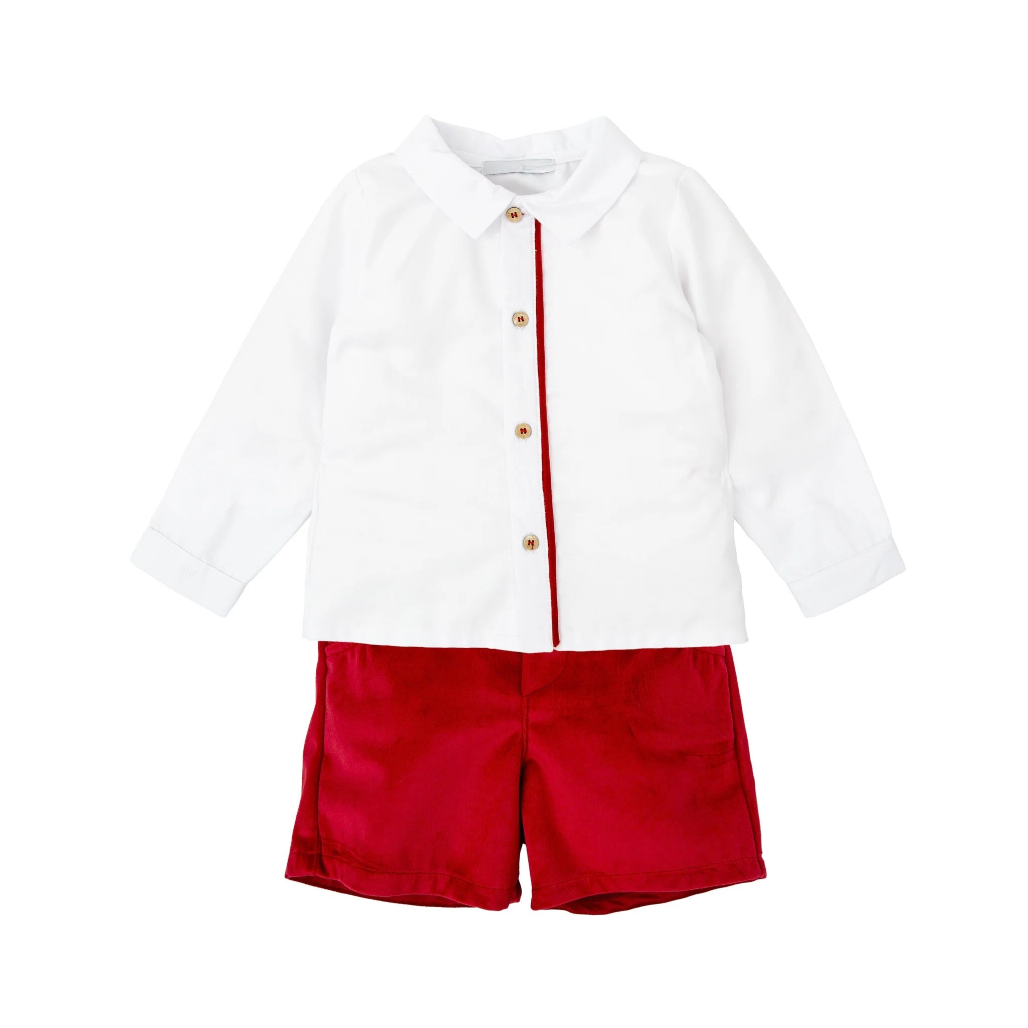 Set de varon camisa de algodón tonalidad blanca con short ajuego en tonalidad rojo