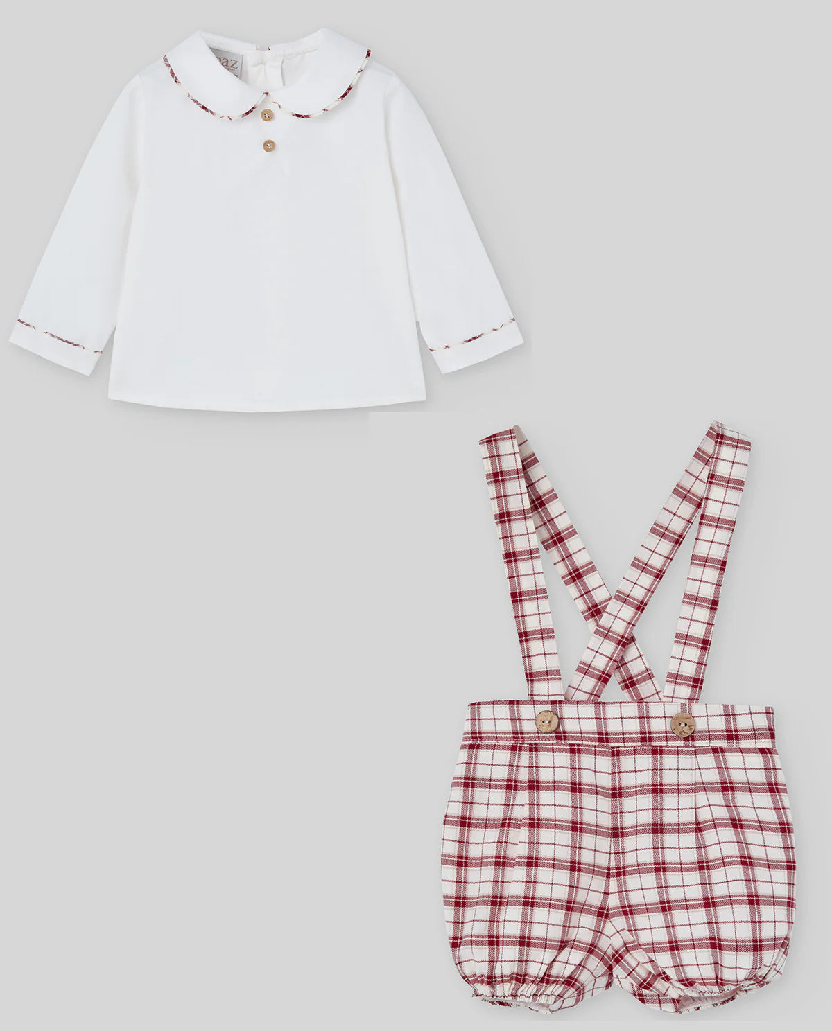 Set de varon camisa de algodón tonalidad blanca con conjunto pantalon corto de colección “acebo”