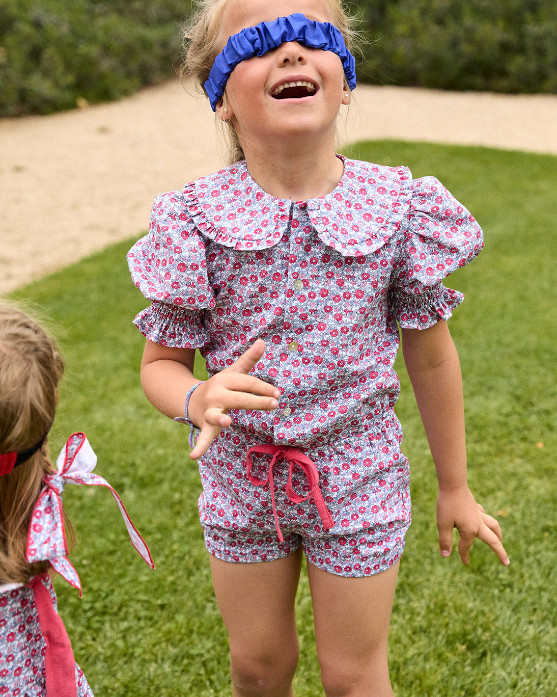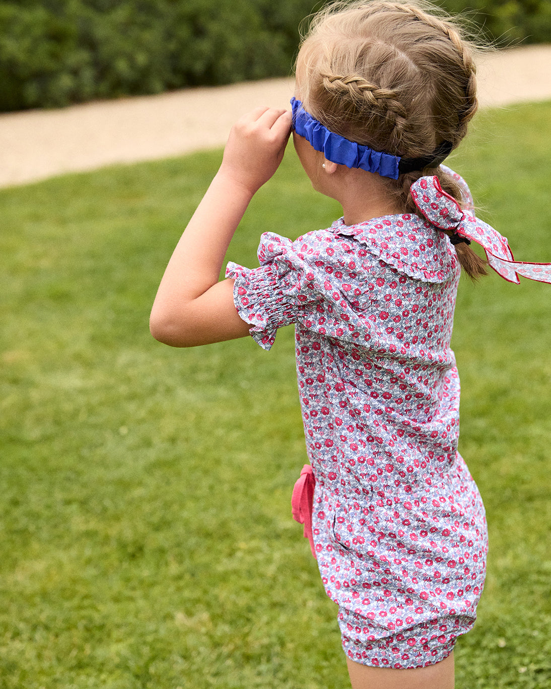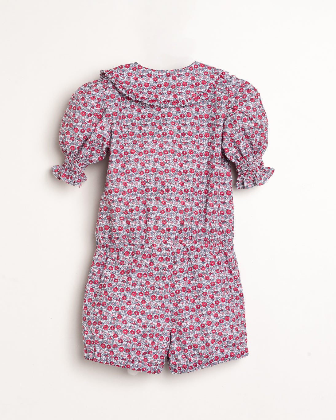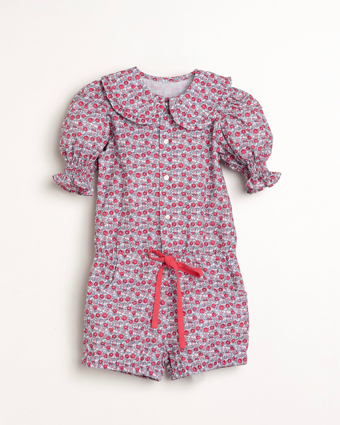 Romper de una pieza floral con estampado fuscia con morado, práctico y bello para todas ocasiones